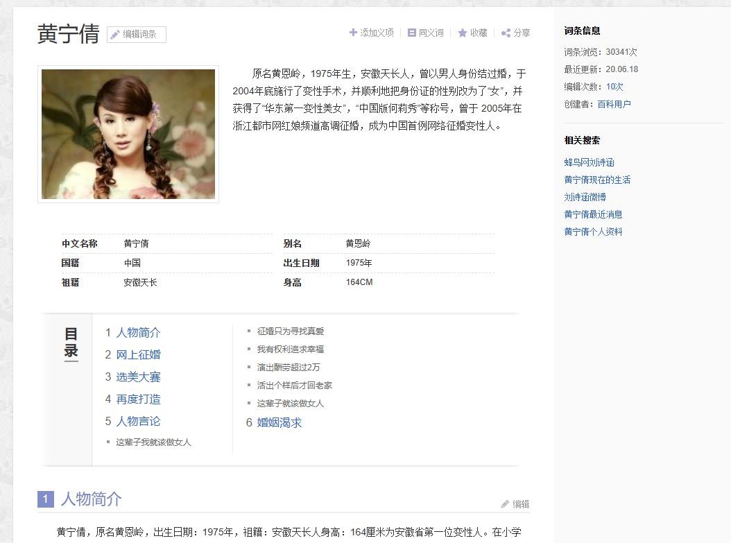1.搜狐网2024.07.07《安徽首个变性人黄宁倩:曾以男儿身娶妻,29岁手术后网上征婚嫁人》