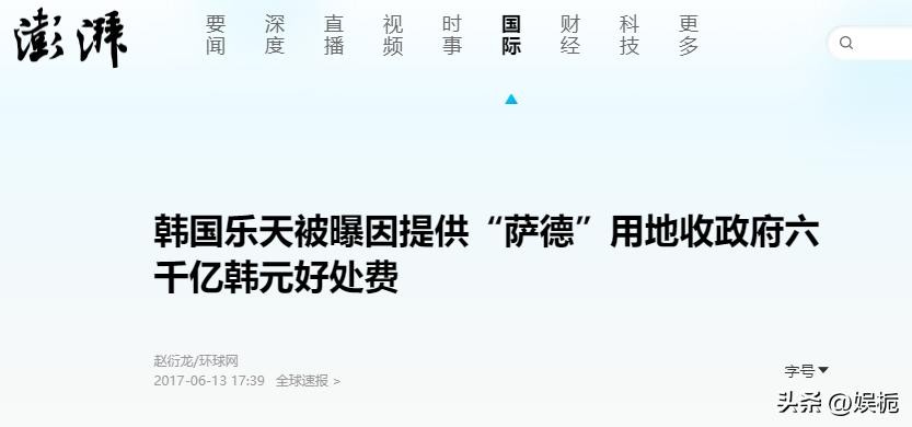 澎湃新闻2017-06-13《韩国乐天被曝因提供“萨德”用地收政府六千亿韩元好处费》