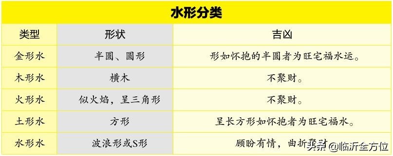 风水学中将水分为五类:木形水、火形水、土形水、金形水、水形水。