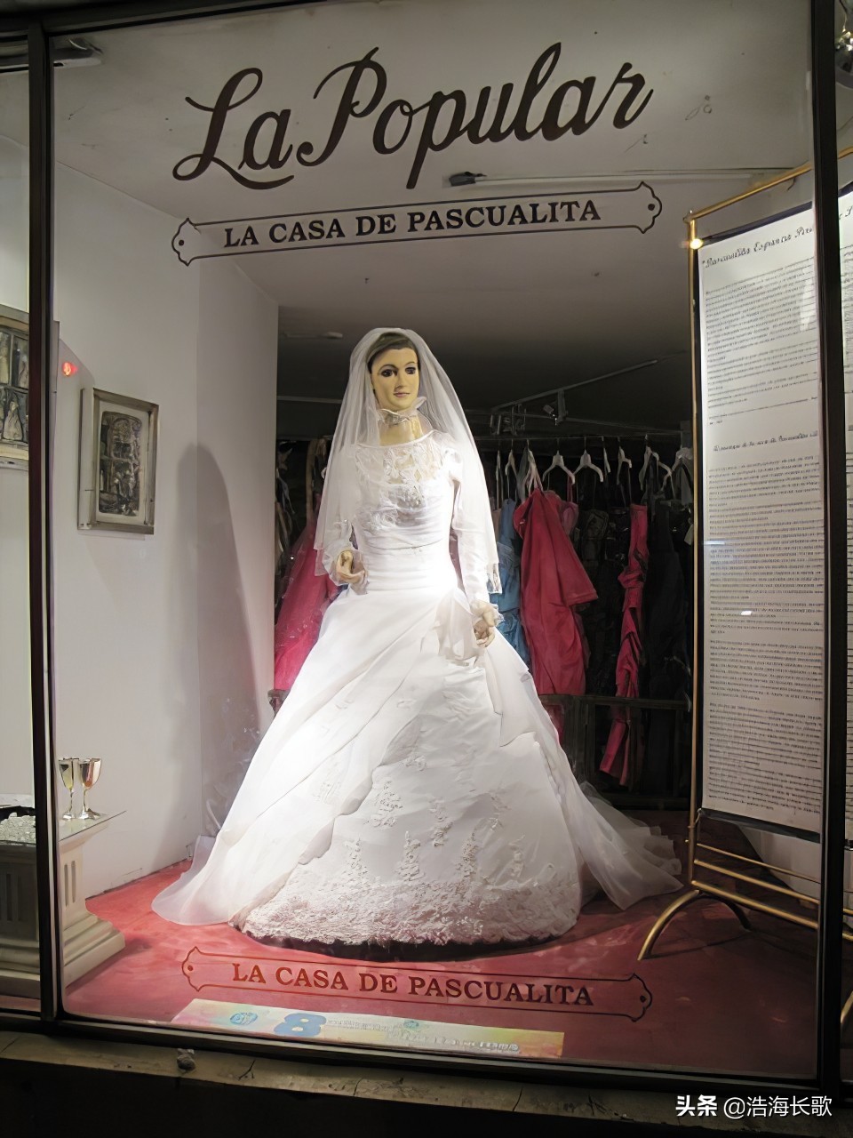 这个叫帕斯卡拉的“干尸新娘”因为跟这家婚纱店的女店主长的非常相似,当地人就认定这是店主的女儿,利用干尸做成的婚纱模特,被广为流传,甚至一度成为墨西哥旅游景点。