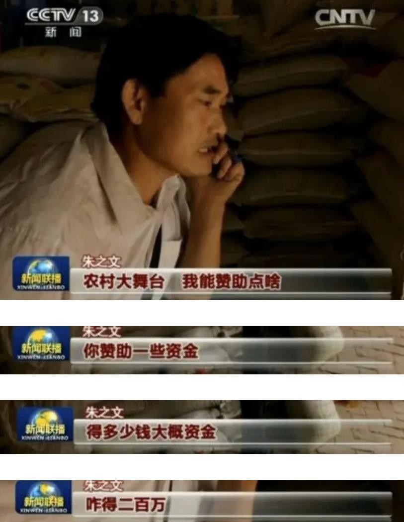 更有甚者,村里有人计划办一场农村大型舞台活动时,这位村里的“富翁”朱之文再次成为了拉赞助的目标。开口就要求200万的赞助费,着实把朱之文吓了一跳。