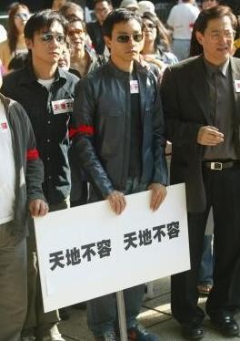 那一年,刘德华、成龙、梅艳芳,香港演艺圈的重量级人物都出现在这场游行中,那一年哥哥还在,就站在悲愤的梁朝伟身边,和他一起举起那张“天地不容”的大字报。