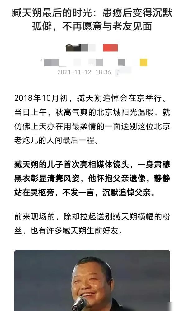 2018年间,臧天朔因为肝癌去世了,享年54岁,在葬礼上许多明星朋友纷纷到场,歌唱界的朋友们基本都来了,虽说这也是臧天朔自己的人脉佳,但是这样的大阵仗也不是常见的,如今已经不多了。
