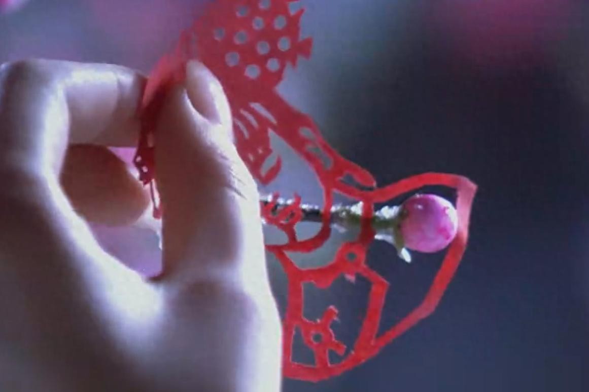 剧中果郡王和甄嬛的第一面在御花园中,他捡到了甄嬛的“剪纸小像”。