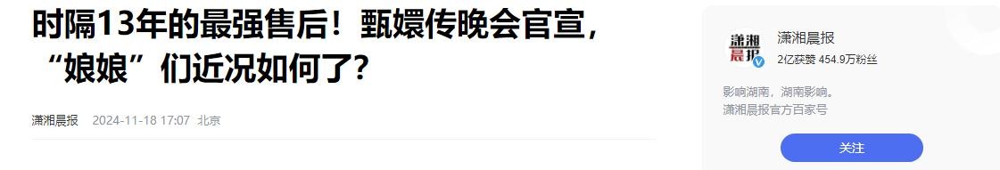 潇湘晨报:时隔13年的最强售后!甄嬛传晚会官宣,“娘娘”们近况如何了?