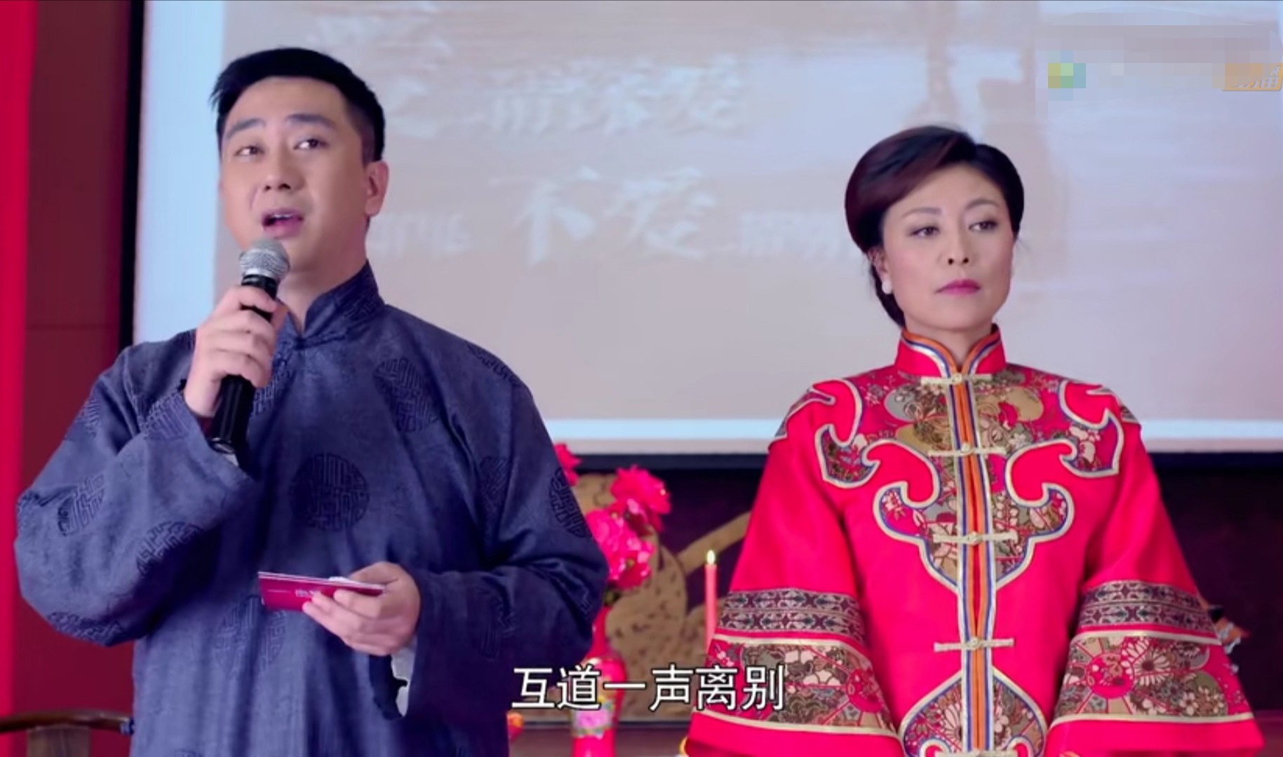 伴随着哀伤的音乐,主持人宣布旧郎、旧娘上场,董大海和苗锦绣都换上了中式礼服,二人相隔着走上舞台。