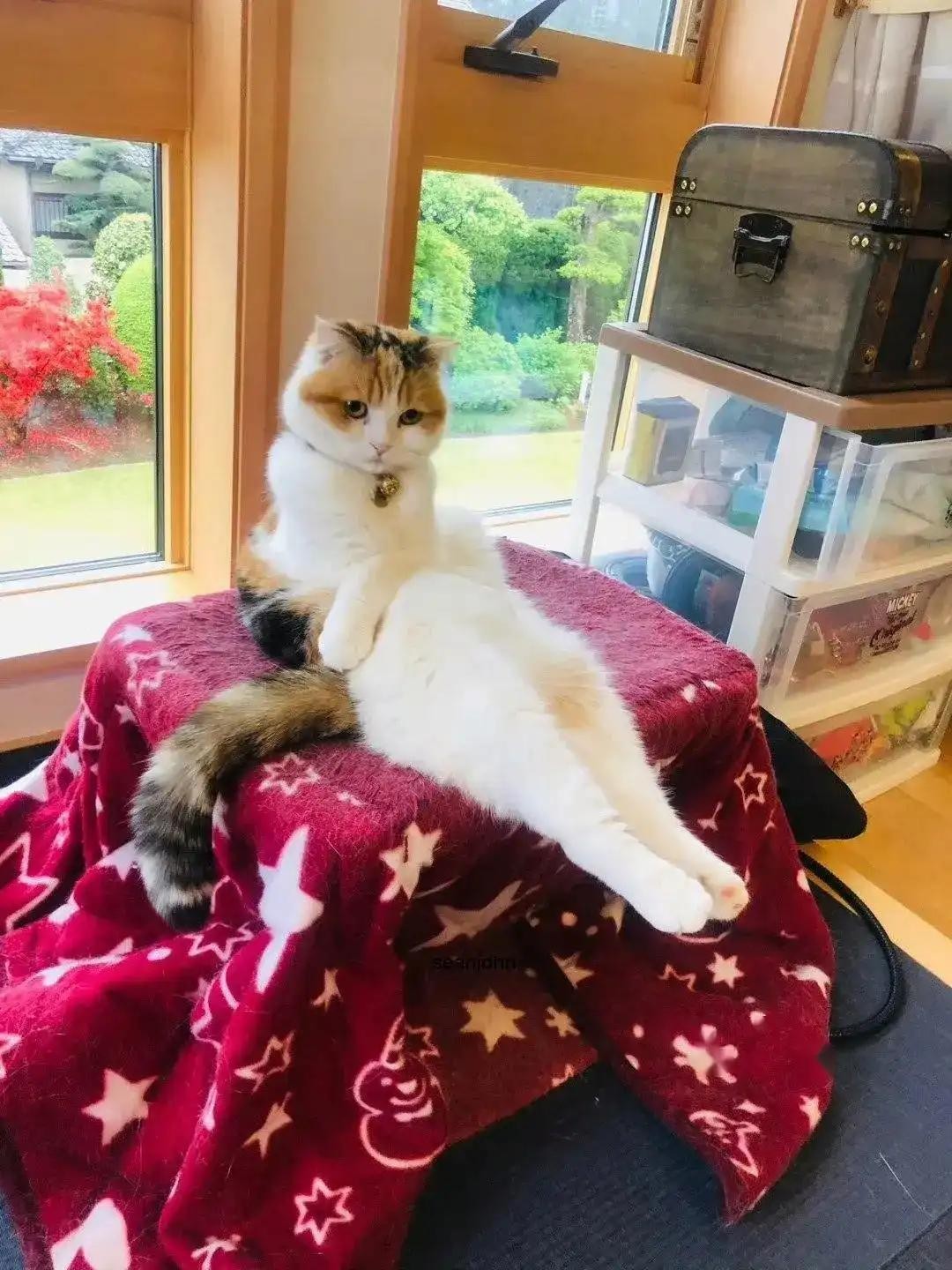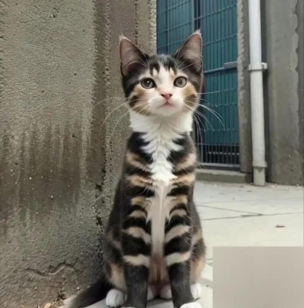 而猫咪,则是站在它身后,露出一脸“不爽”的表情。
