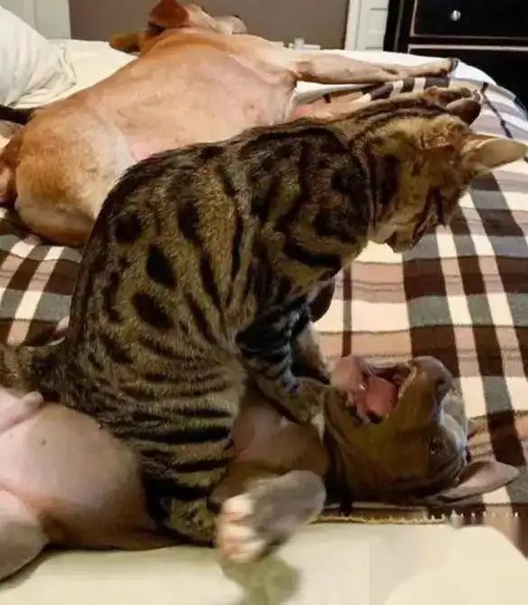 从画面上看,它们不仅没有打架,反而是和平共处的画面。