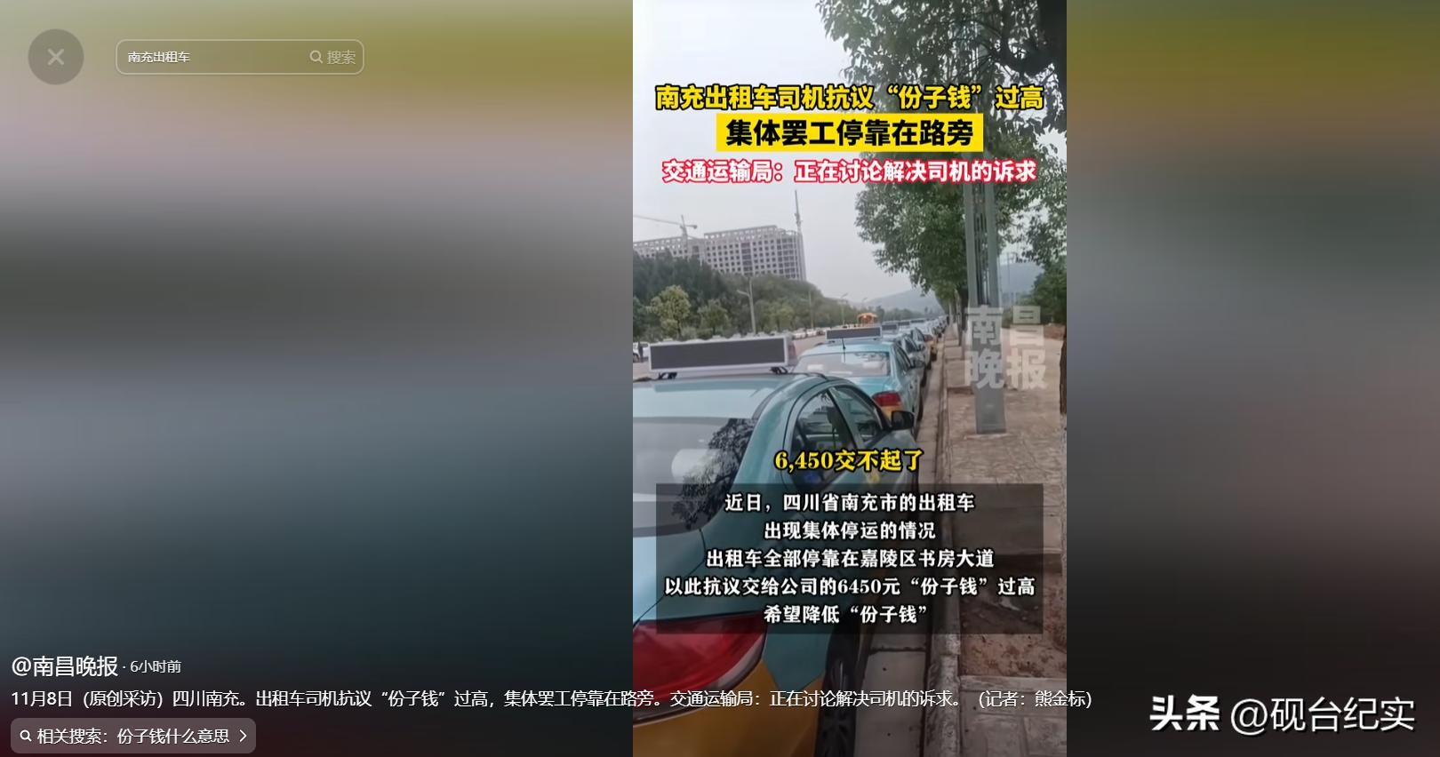 南充出租车司机集体抗议!每月份子钱6450,出租司机工资引争议!
