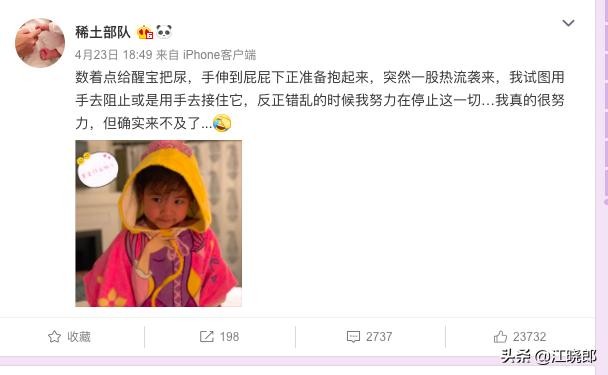 生下女儿星宝后,她将自己的微博个人资料更改为“唤醒母亲”。甚至连微博头像在最近几年都没有变过,这是一副巨大的画面。她曾经很残酷,但现在她的身体更加柔软,完全像一个善良的老母亲。
