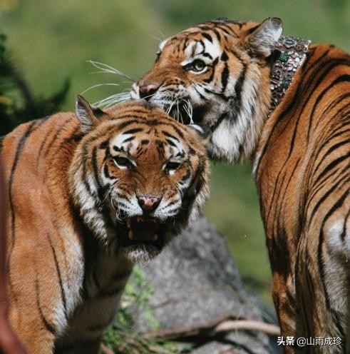 一开始它们并不认识对方,互相攻击、撕咬,但正是这种相互地厮打让两只老虎回忆起了儿时的时光,彼此认出了对方。那一刻,它们眼中没有了愤怒,转而变得很温柔,然后它们开始像儿时一样在一起玩耍。