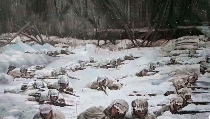 那时天上还不断地下着雪,战士们只能靠顽强的意志力来抵挡寒冷。