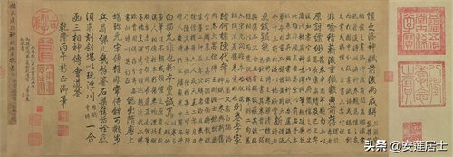 《石渠宝笈旧藏》恺之洛神赋,前后两成骈。顾恺之书洛神,后有赵孟頫补书赋,兹复得此洛神卷,题为恺之画。
