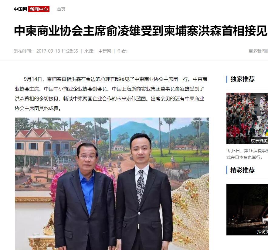 凭借与当地政府的关系,他迅速将自己包装成“中柬商业协会”的会长。他还把自己伪装成“一带一路”战略的先锋,频繁出现在柬埔寨高层的场合,甚至一度成为柬埔寨首相洪森的座上宾。