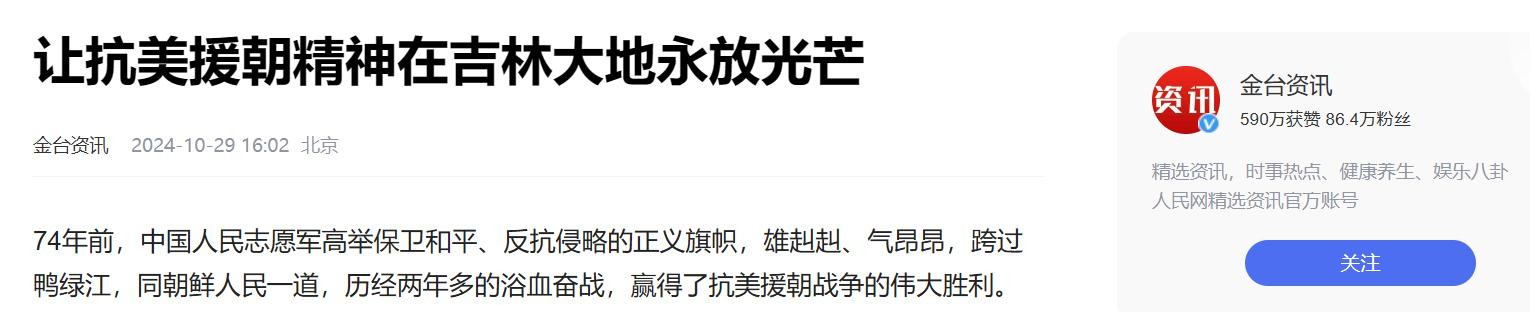 参考资料:金台资讯——让抗美援朝精神在吉林大地永放光芒