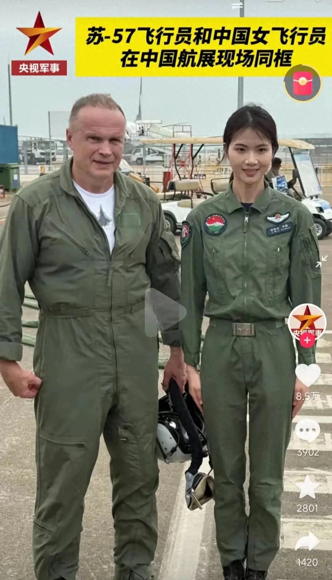 巾帼英姿,蓝天共舞:徐枫灿与苏-57驾驶员的同框瞬间