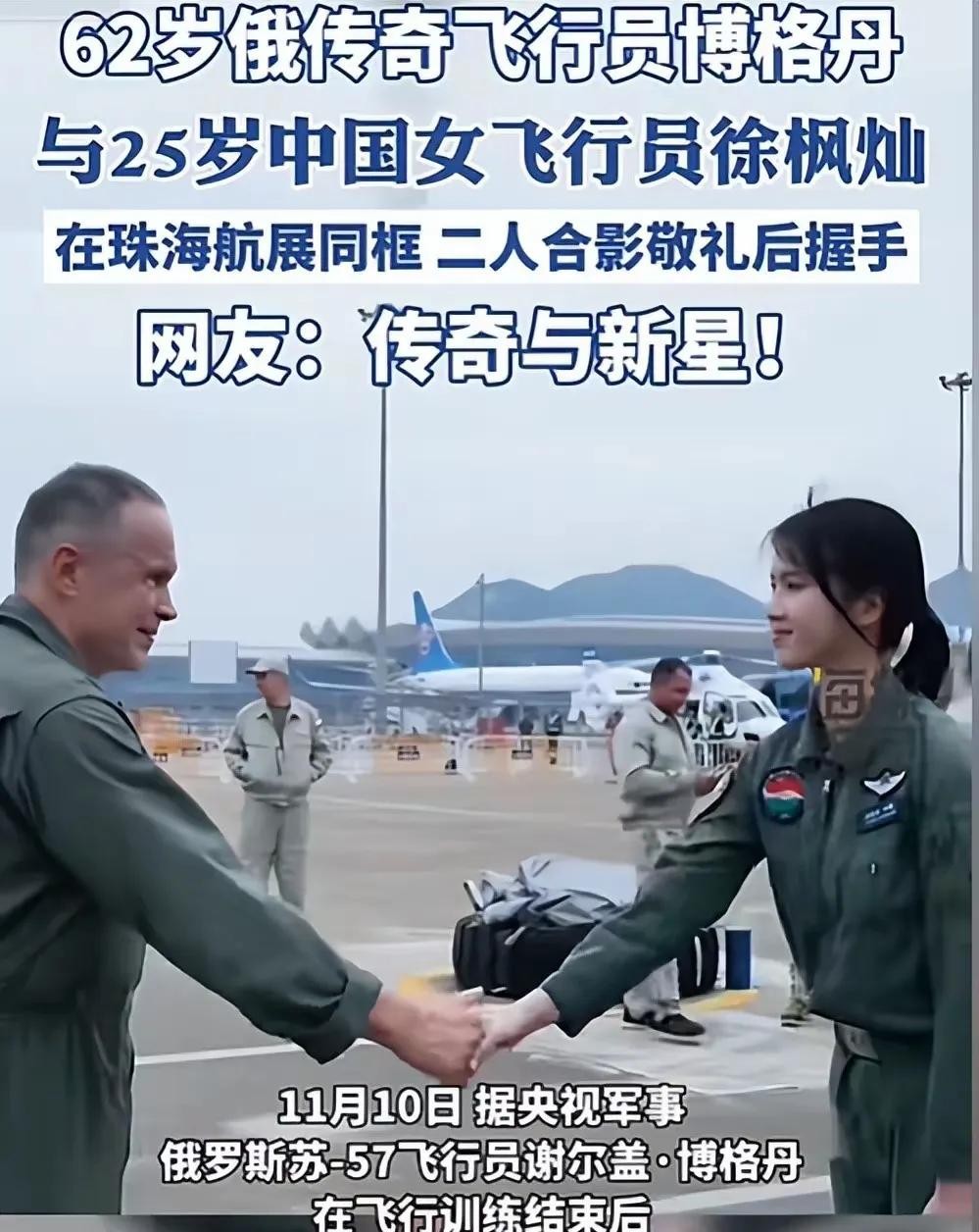 嘿,各位小伙伴们,你们听说了吗?11月10号那天,珠海航展上发生了一件让全网都沸腾的大事!咱们中国的女飞行员徐枫灿,竟然和驾驶苏-57战斗机的俄罗斯飞行员博格丹同框了!这消息一出,就像平静的湖面上投下了一颗重磅炸弹,瞬间炸出了无数水花,大家都兴奋得不行。