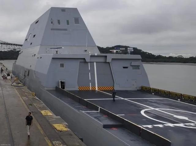 美国海军“朱姆沃尔特”号导弹驱逐舰舰尾布局清晰照片