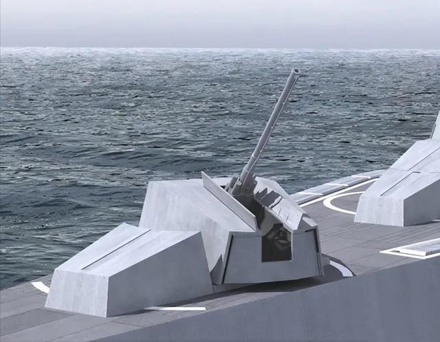 美国海军“朱姆沃尔特”号导弹驱逐舰先进舰炮系统发射假想图
