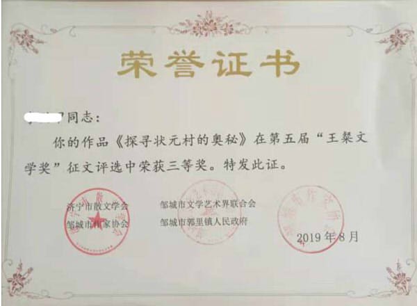 现在,为纪念王璨,在他的家乡山东省邹城市郭里镇,每年都要举办“王璨文学奖”征文比赛,当地作家和文学爱好者纷纷拿起手中的笔,记录家乡发生的翻天覆地的变化和人民群众幸福美好的新生活,讴歌新时代,歌唱新时代。