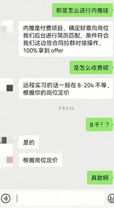 实习岗位的供不应求催生了一条内推产业链。在网站上搜索 " 金融实习内推 ",出现在前的基本都是机构铺天盖地的广告。但实际上,部分内推参差不齐,有些甚至是花式骗局。