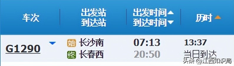 目前,长沙至长春每天仅此1班次高铁——G1290次列车。