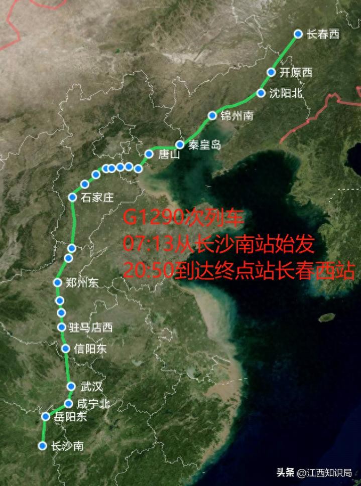 长沙至长春高铁,停靠25个站点,G1290次列车耗时13小时37分钟