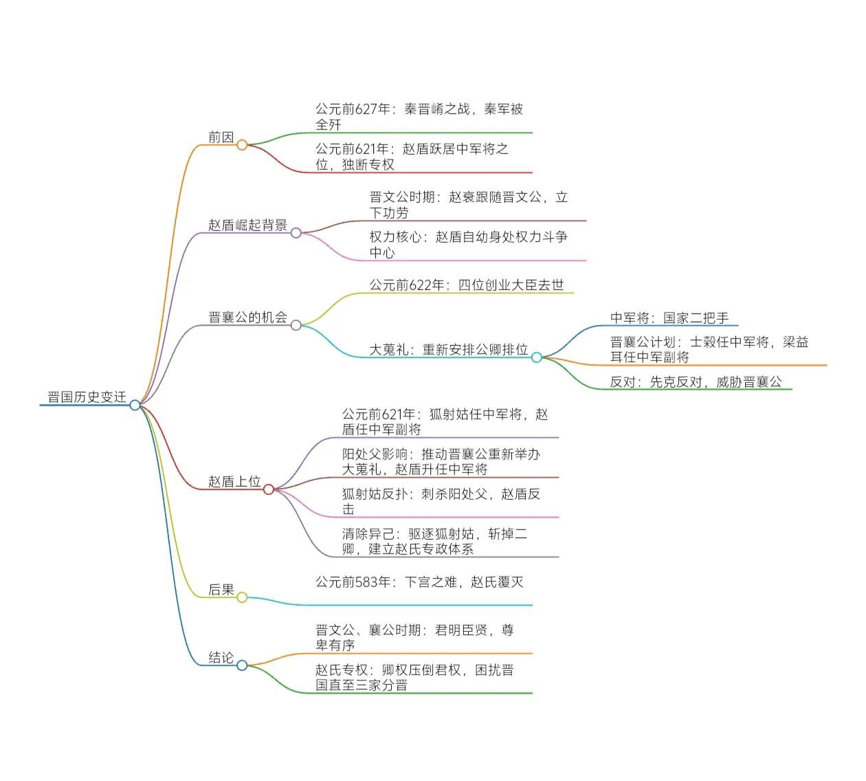 文章的核心观点在于揭示了晋国在晋文公和晋襄公时代看似和谐的政治局面下,实则隐藏着权力斗争的暗流。赵盾凭借父亲的功绩和个人能力,逐步掌握了晋国的最高权力,最终导致了赵氏专政的形成。这一转变不仅改变了晋国的政治格局,也预示着晋国未来长期存在的卿权压倒君权的问题,直至三家分晋的终结。