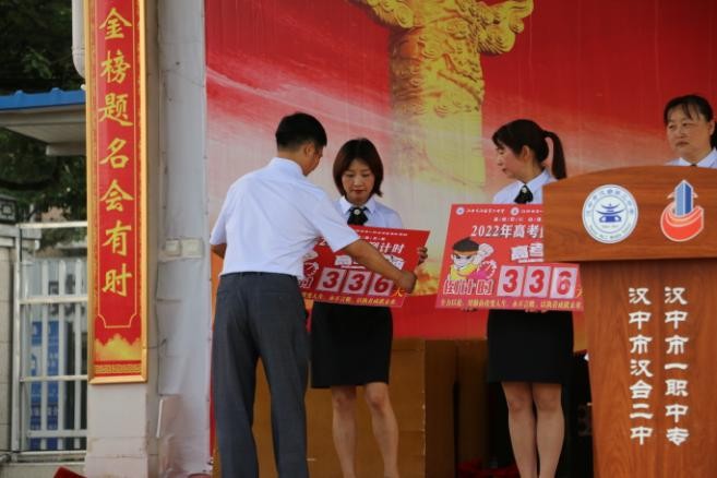 动员大会上,2021届高考应届毕业生优秀代表文科李洁茹同学、理科王柯凡同学为学弟学妹们传经送宝,同时,该校的新一届高三教师以及学生代表做了表态发言,副校长张明君为全体班主任颁发“距2022年高考336天倒计时牌”。西西新闻汉中(通讯员:杨春兰 实习记者:袁荣)