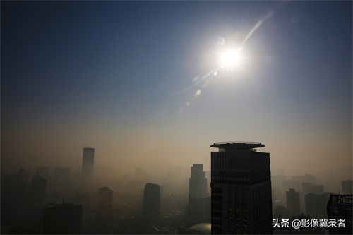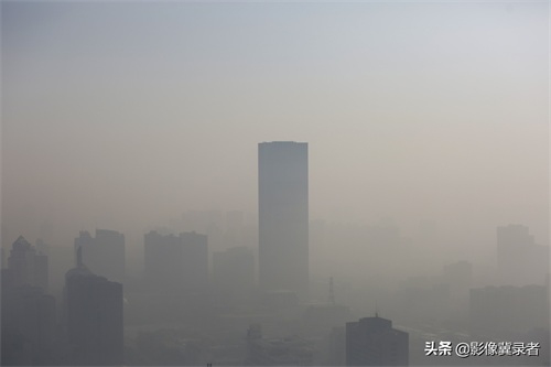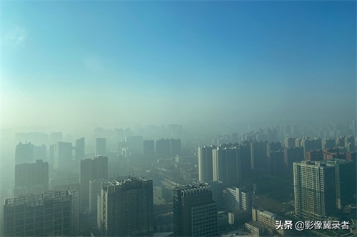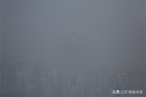 石家庄遭雾霾侵袭,城市上空惊现“蓝灰两重天”