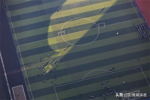 石家庄一中操场上,学生们正在上体育课。11月18日上午10点,根据空气质量实时显示,当前为中度污染。