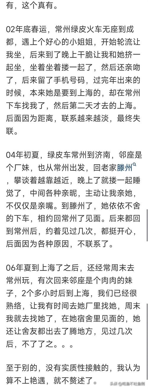 大家有过火车上艳遇经历么?网友“快餐”式故事分享,太真实了