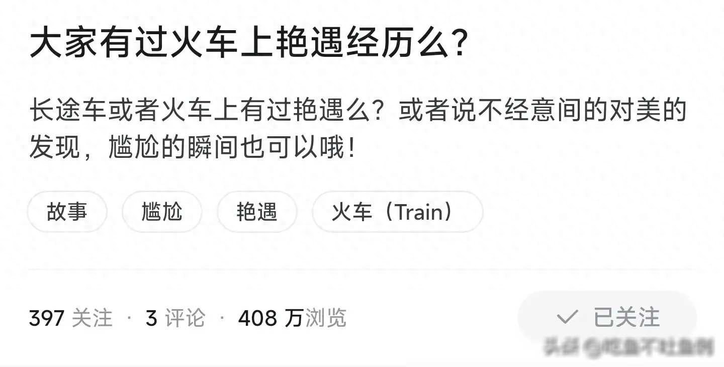 当然,也有网友表示,在火车上遇到的艳遇并不都是美好的。有一次,他遇到了一个看似温柔的女孩,两人相谈甚欢。然而,当火车到达目的地时,女孩却突然消失得无影无踪,仿佛从未出现过一样。这让他感到十分失落和困惑。