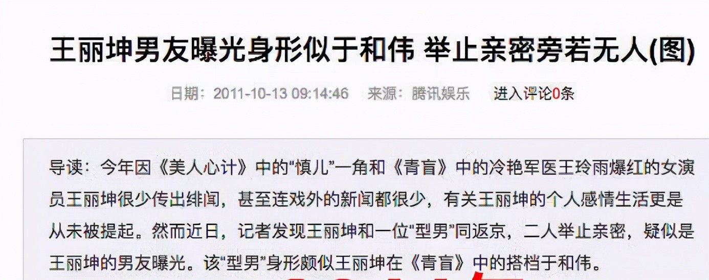 2011年,王丽坤还因为和于和伟一起出演《青盲》传出绯闻,有人甚至怀疑他们是假戏真做。