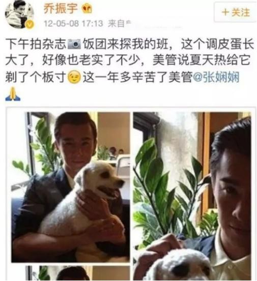闲来无事的时候,日常最喜欢的事情,当然是和乔振宇隔空秀恩爱。他们的“媒人”,是乔振宇养的一条小狗狗,王丽坤为它取名为“饭团”。