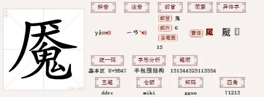 魇,读作魇(yǎn), 汉语二级字,形声。从鬼,厌声。
