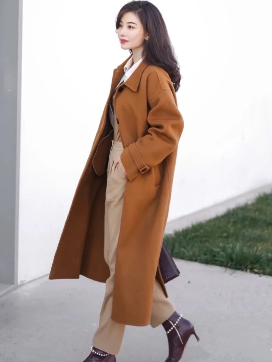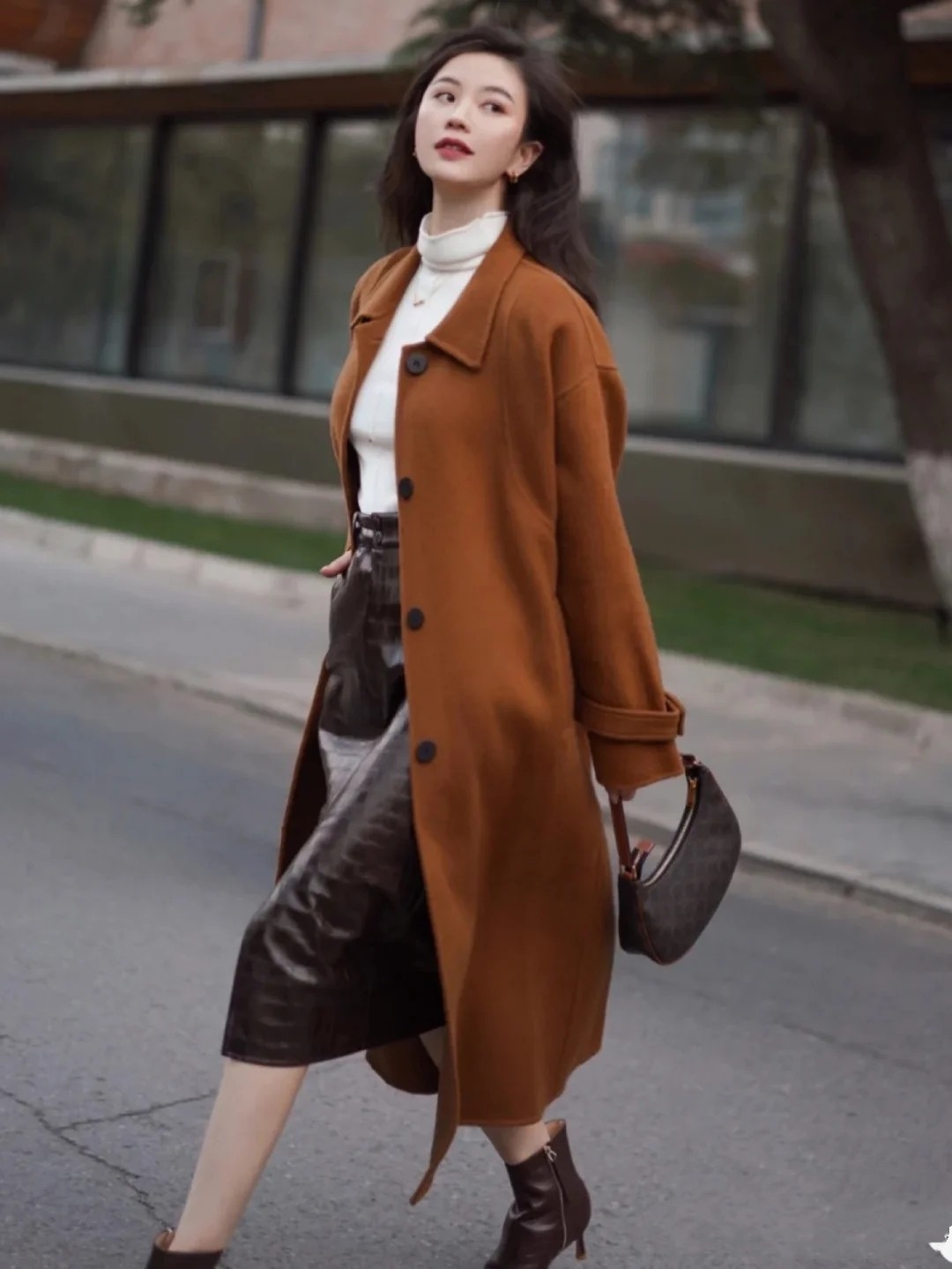 天凉了,试试这件高级感的焦糖色大衣吧,温暖你整个冬天