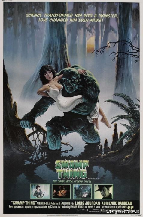 很少有漫画电影海报利用漫画的视觉语言和图像,《沼泽怪物》确实拥有这样一个事实,这是一张栩栩如生的漫画海报,画的是沼泽怪物和他心爱的爱丽丝。