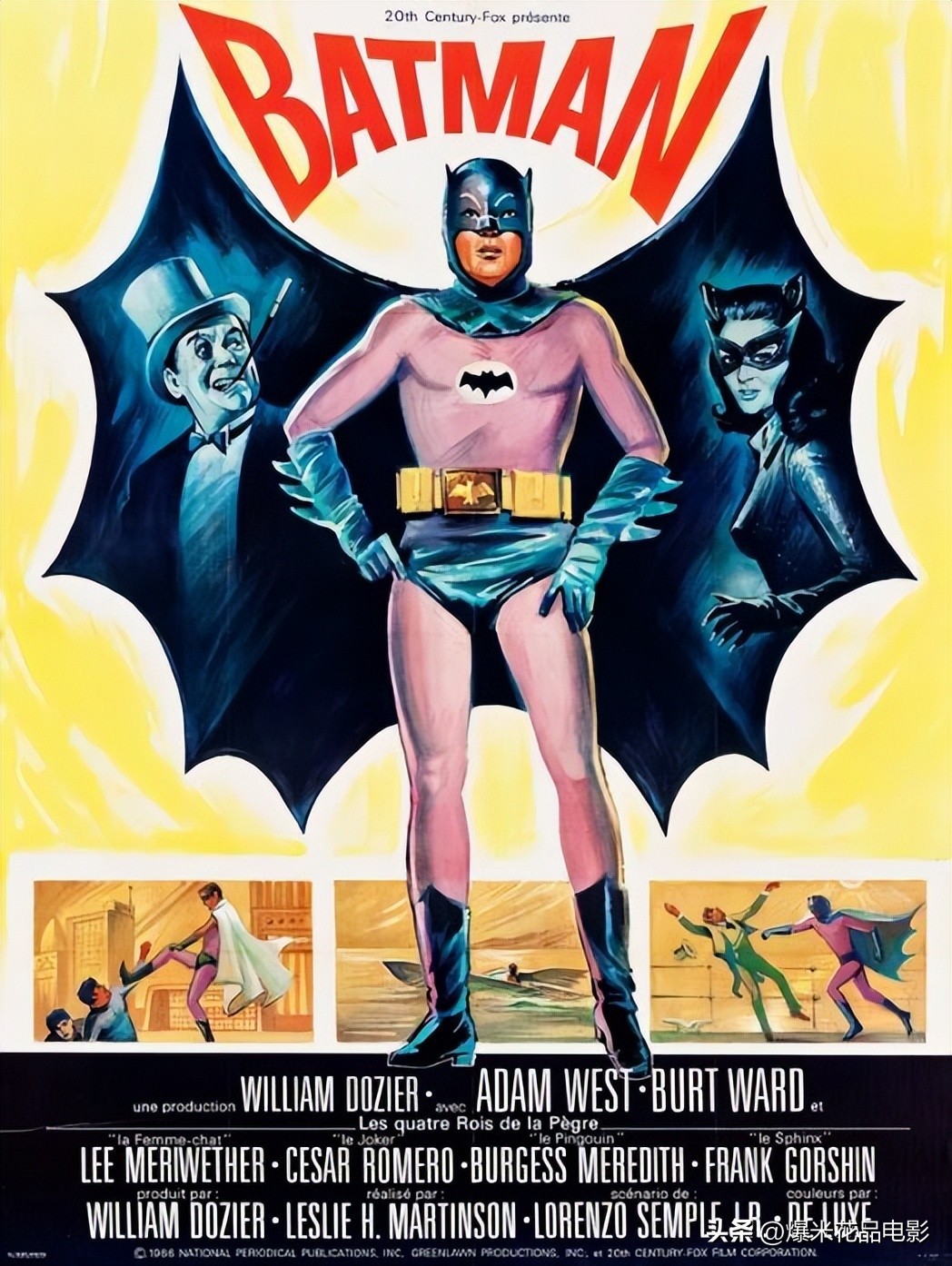 显然,这张海报属于另一个时代。2022年上映的一部蝙蝠侠电影不可能在宣传中不把他放在聚光灯下,相反,亚当·韦斯特饰演的黑暗骑士的两侧是企鹅和猫女的形象,他们也在电影中出现。尽管如此,这仍然是一个可爱的插图,虽然蝙蝠侠的标志本身并不是来自任何DC漫画,但这是一个吸引人的标题处理方式。