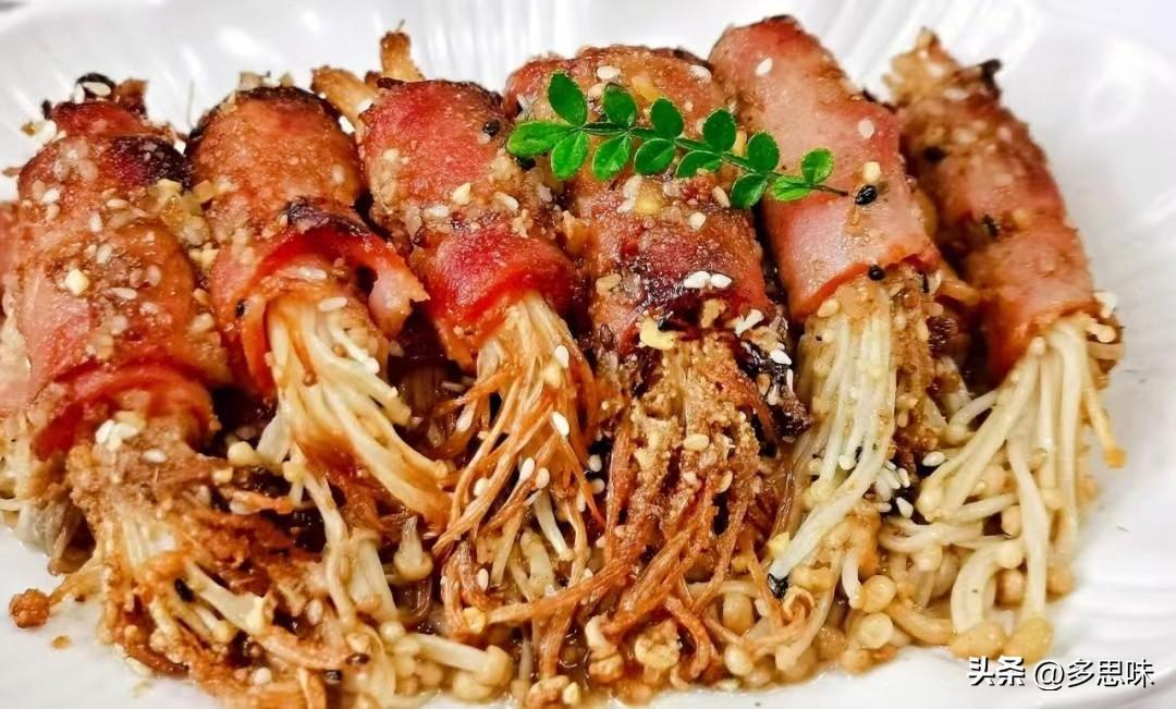 食材:金针菇 1把,培根 1包,蚝油 1勺,生抽 1勺,烧烤料 1勺,黑白芝麻 1勺。