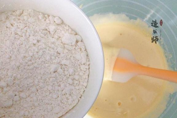2、放入面粉是注意搅拌的手法,建议快速利落的翻拌完成,以免消泡问题的发生。
