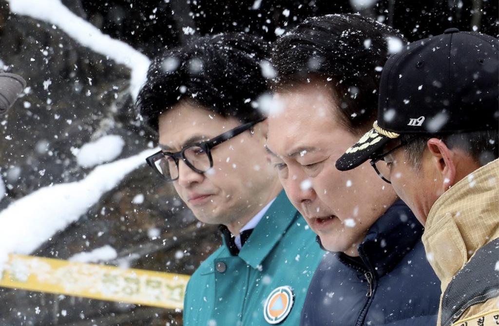 韩国总统尹锡悦(中)和韩东勋(左)(图源:社交媒体)