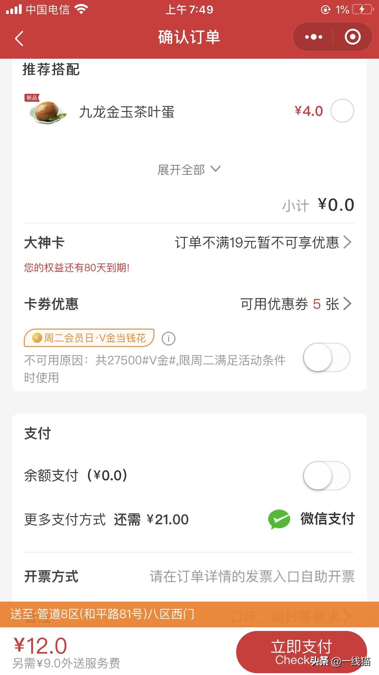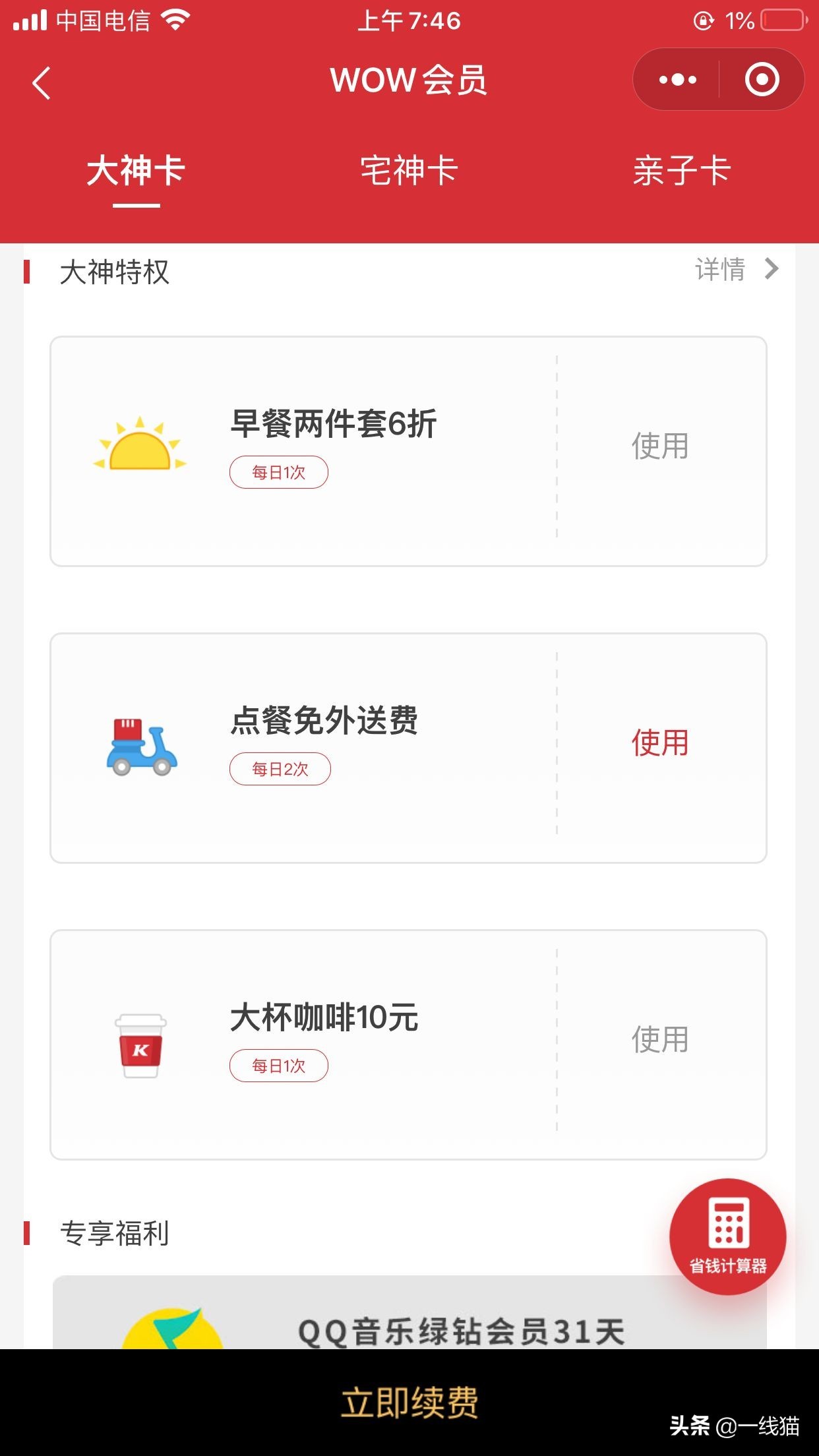 首先购买了大神卡,才能通过手机微信小程序的肯德基会员可以看到大神卡内的一些优惠项目:一、早餐两件套6折;二、点餐免外送费;三大杯咖啡10元。这几天,小编把这些都一一的试过。总结过了一个字:坑。大神坑,下面小编一一给大家细说为什么坑。