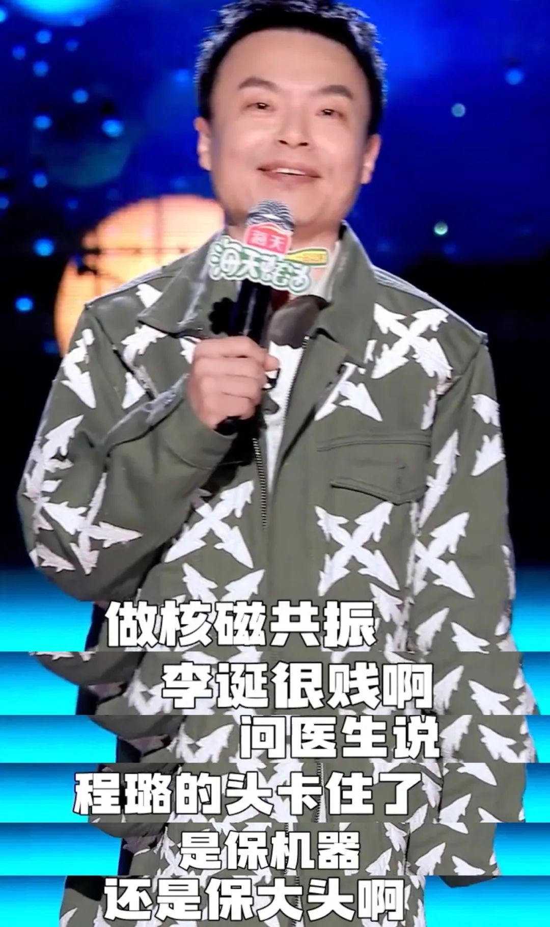 接下来,很顺理成章地说到治病和体检的桥段,也就自然地用上了自己大头梗。这是离婚话题之外,最能代表他的笑点。