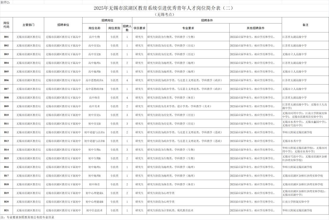4.涓撲笟鏉′欢锛氭墍瀛︿笓涓氬繀椤荤鍚堟姤鑰冨矖浣嶇殑涓撲笟瑕佹眰銆傝瑙併€?025骞存棤閿″競婊ㄦ箹鍖烘暀鑲茬郴缁熷紩杩涗紭绉€闈掑勾浜烘墠宀椾綅绠€浠嬭〃銆嬶紙瑙侀檮浠?銆?锛夈€傞檮浠朵腑鏈夊叾浠栨潯浠惰姹傜殑锛岄』鍚屾椂婊¤冻銆?/p>