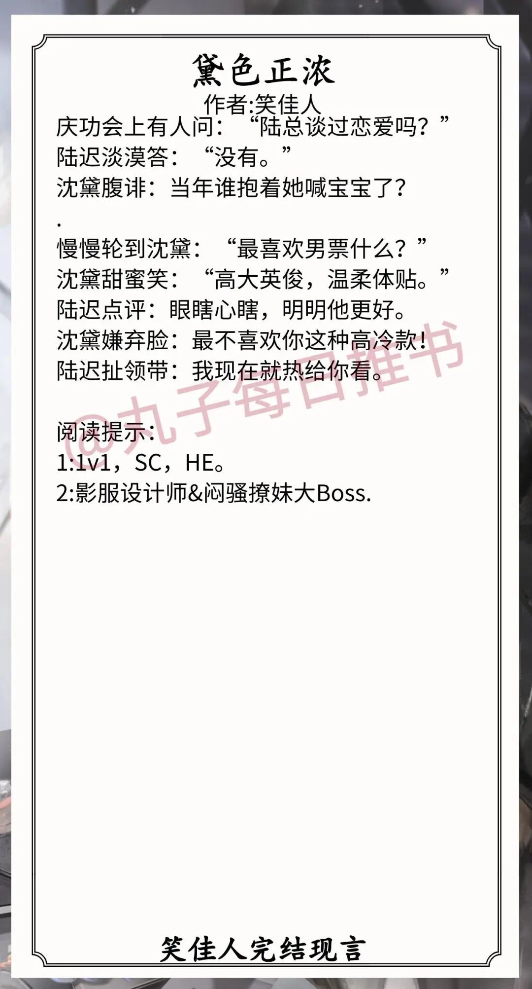 6.《黛色正浓》作者:笑佳人(美艳影服设计师vs闷骚撩妹大总裁,久别重逢,破镜重圆)