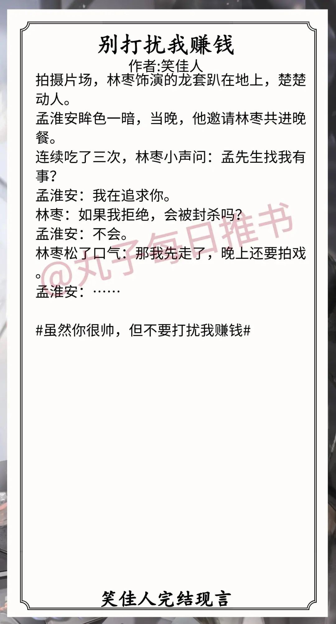 7.《别打扰我赚钱》作者:笑佳人(坚韧小明星vs脑补帝商界大佬,打脸真香,追妻火葬场,娱乐圈甜宠文)