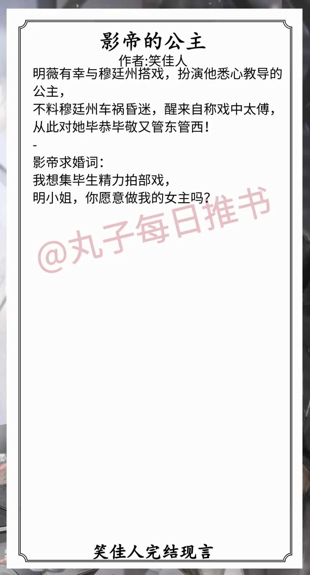 8.《影帝的公主》作者:笑佳人(貌美清新小花vs高冷傲娇影帝,打脸真香,娱乐圈甜宠文,轻松爆笑风)