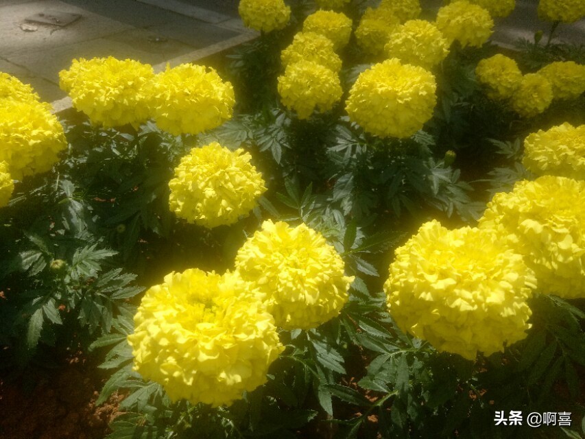 万寿菊是一种常见的园林绿化观赏植物,路边花坛、广场、节日花展布景适宜,也可以作家庭盆栽。