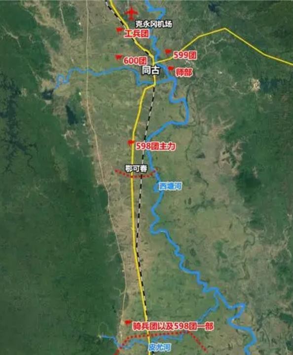戴安澜对第200师的在同古的部署如下:598团前至鄂可春一线构筑防御阵地,相当于在同古的南边加了一道屏障,同时还让第五军配属第200师的一个骑兵团外加598团一个步兵连,在鄂可春再南面的皮尤河一线构筑警戒阵地,从而来延缓日军的推进速度,好让师主力部队在同古城有更多的时间构筑防御阵地。另外让军配属的工兵团外加一个步兵营北上克永港机场进行守卫,同时担负着万一同古守不住时对铁路的破路任务,这个方向也是第200师往北的退路。第599团和第600团守卫同古城区。